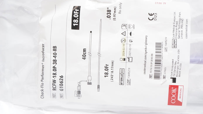 - Cook Medical G10626 Check-Flo Performer Introducer 18.0Fr x 0.038inch x 40cm (x)
