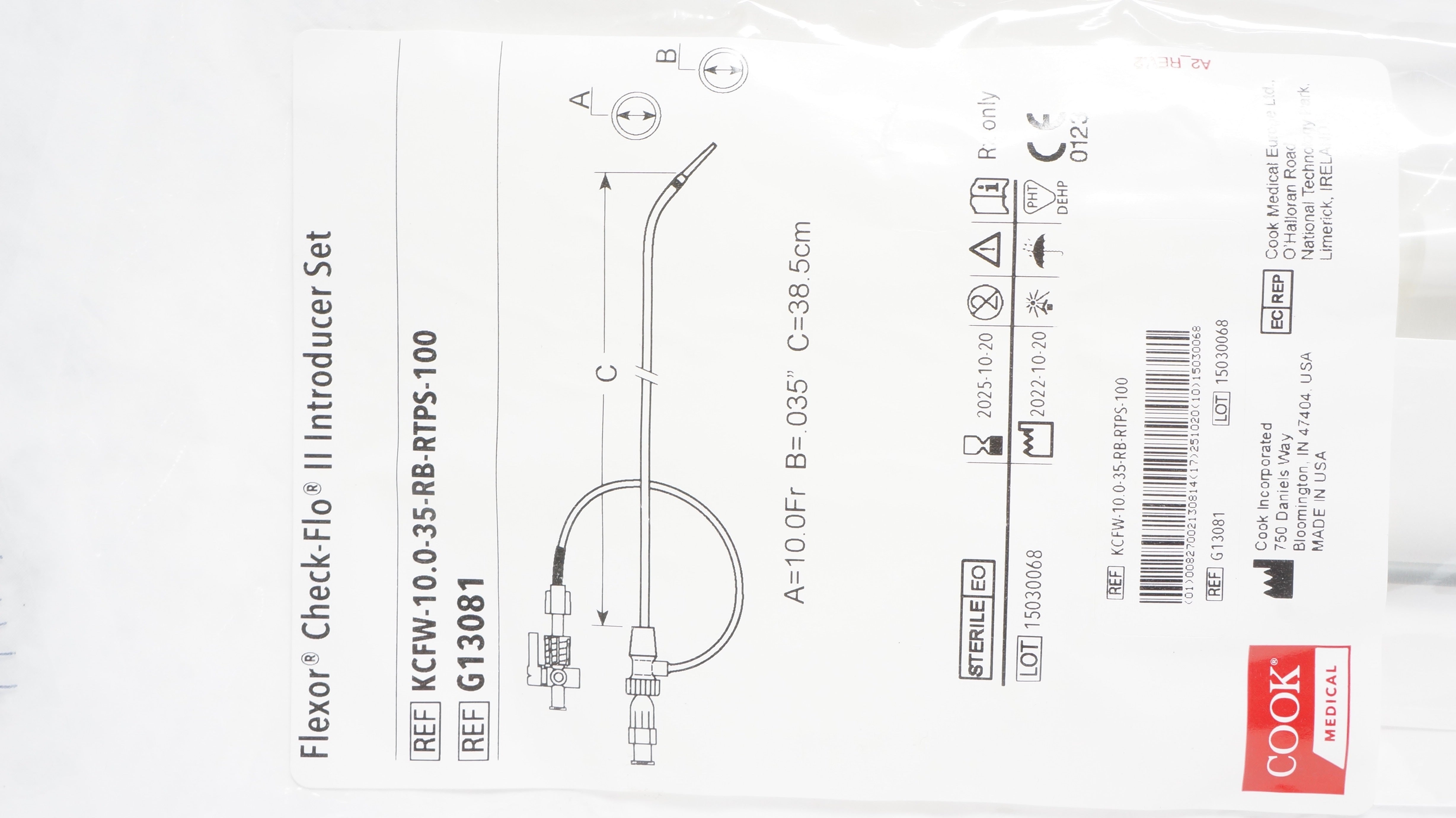 - Cook Medical G13081 Flexor Check-FloII IntroducerSet 10Fr x .038inch x 38.5cm(x)