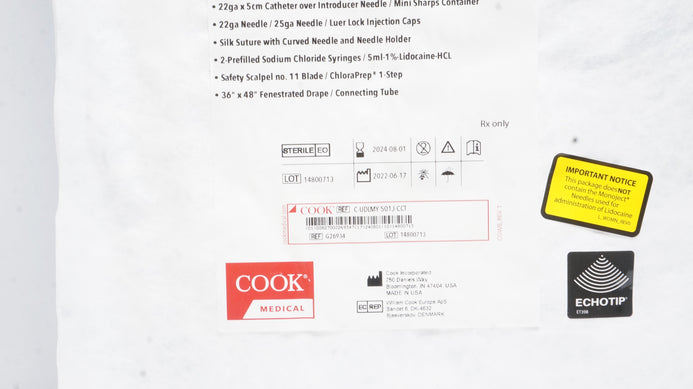 - Cook Medical G26934 Central Venous Tray 5.0Fr/8cm