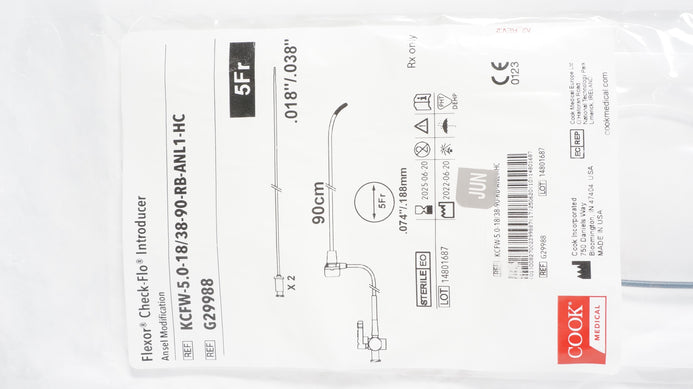 - Cook Medical G29988 Flexor Check-Flo Introducer 5Fr x 90cm (x)
