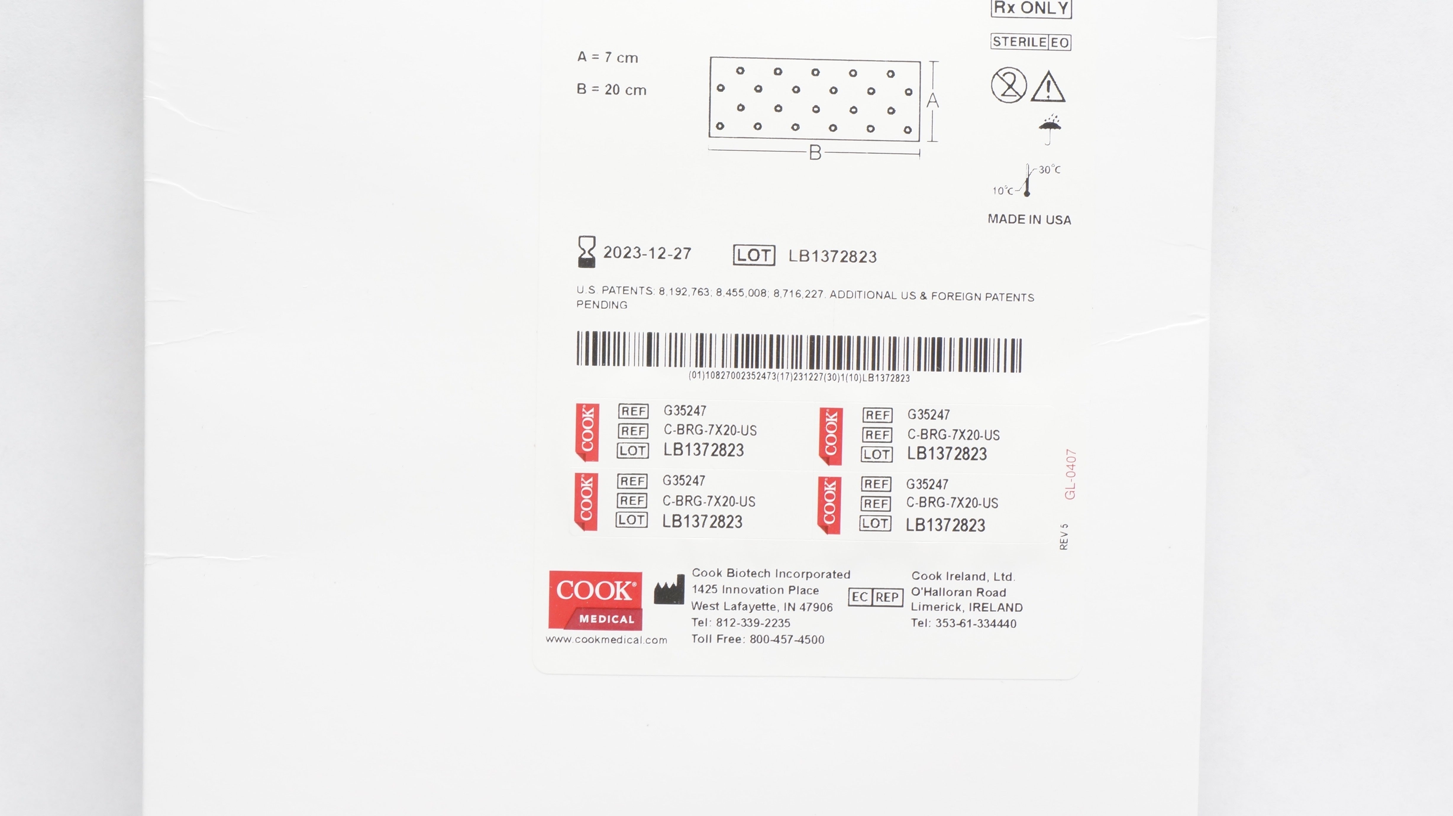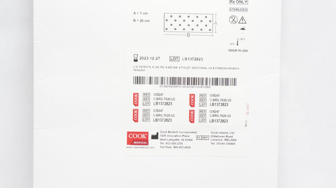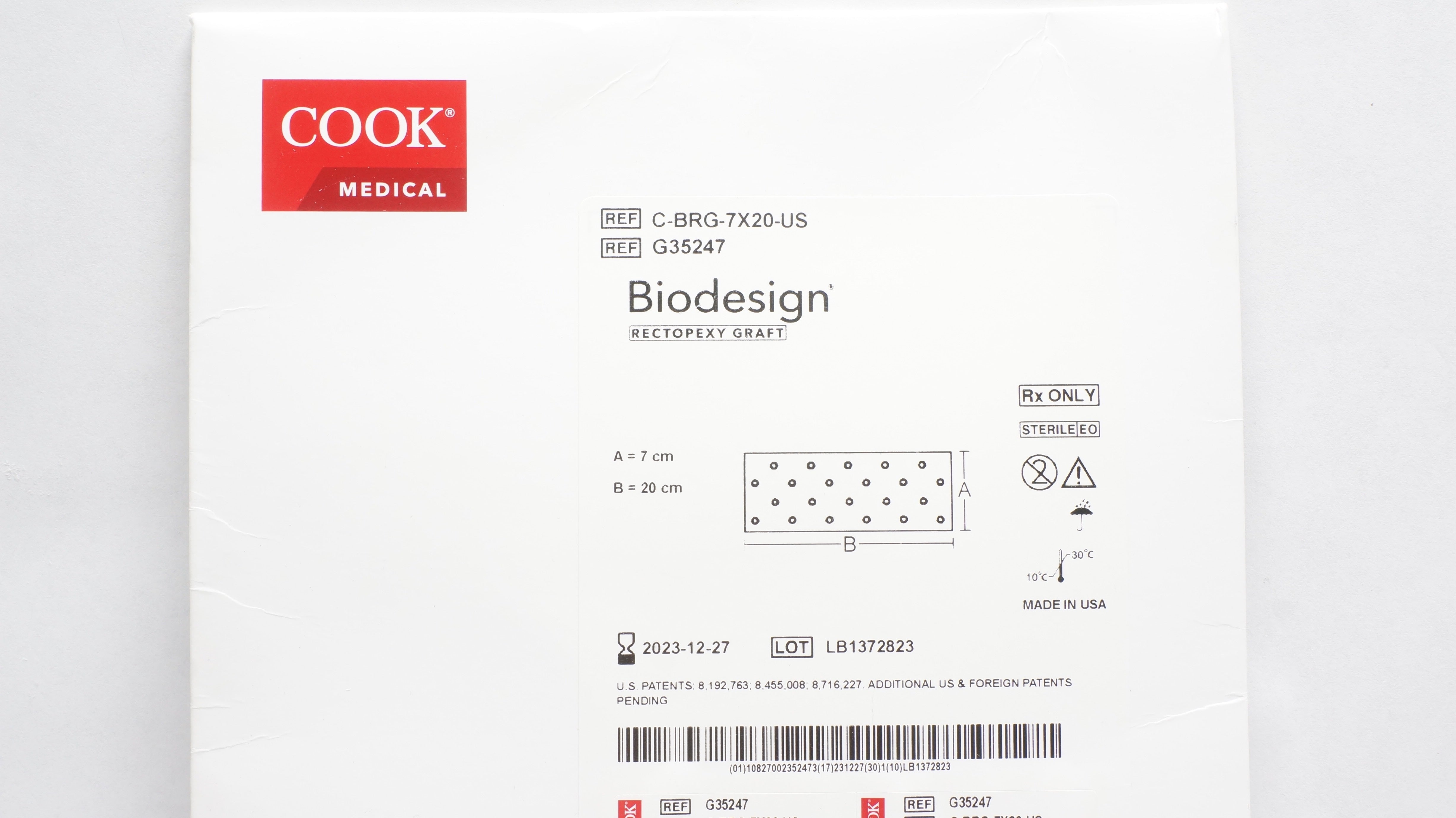 - Cook Medical G35247 BIodesign Rectopexy Graft 7cm x 20cm (x)