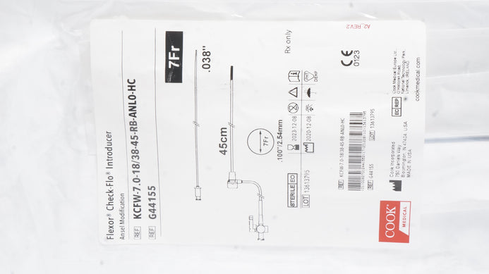 - Cook Medical G44155 Flexor Check-Flo Introducer 7Fr x .018 x .038inch x 45cm (x)