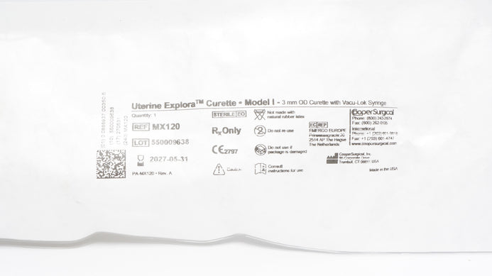 - Cooper Surgical MX120 Uterine Explora Curette Model I 3mm OD w/Vacu-Lok Syringe