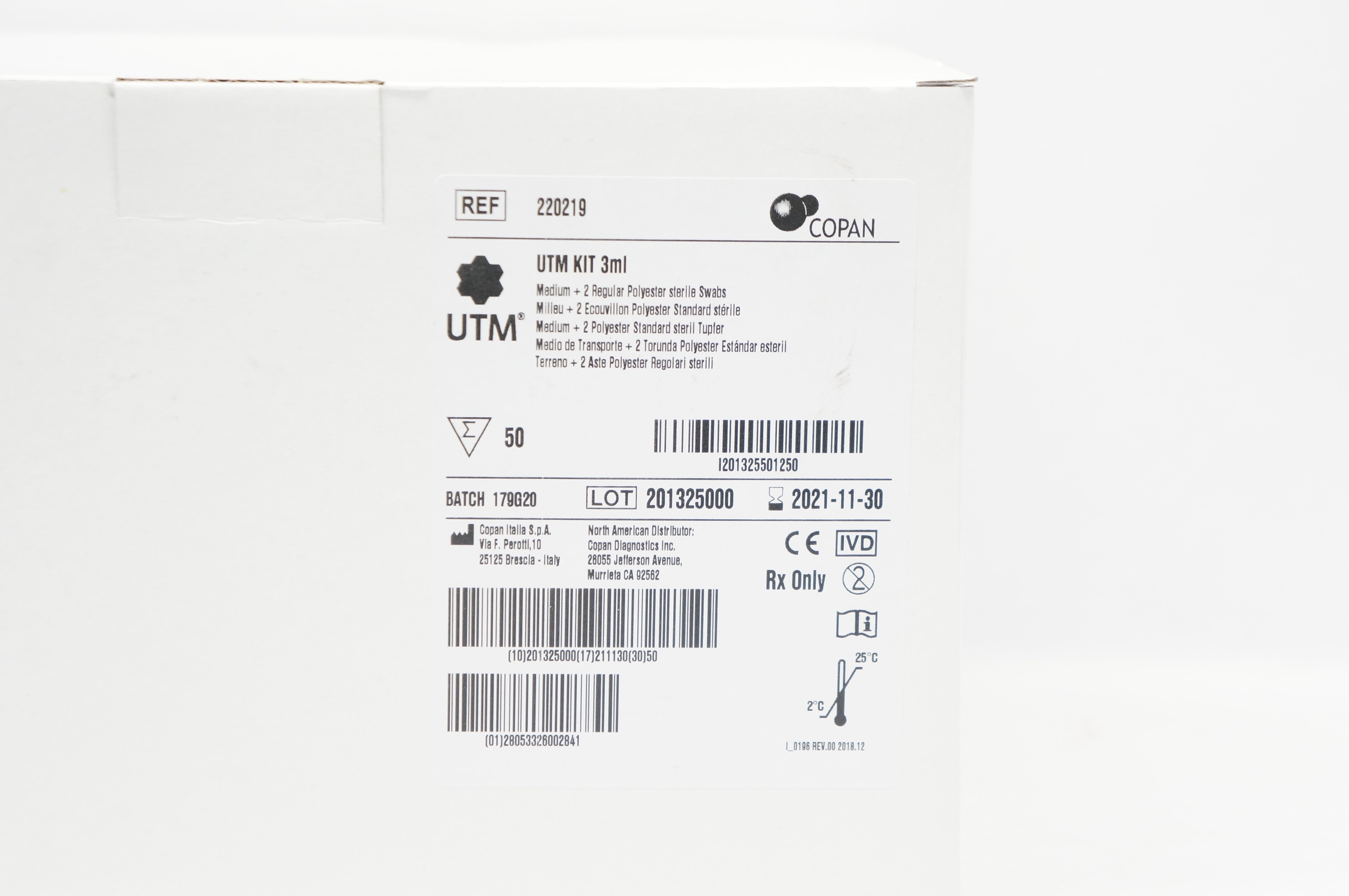 - Copan 220219 UTM Kit 3ml (x) - Case of 50