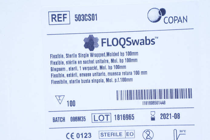 - Copan 503CS01 FLOQSwabs Flexible, Single Wrapped, Molded bp 100mm - Box of 100