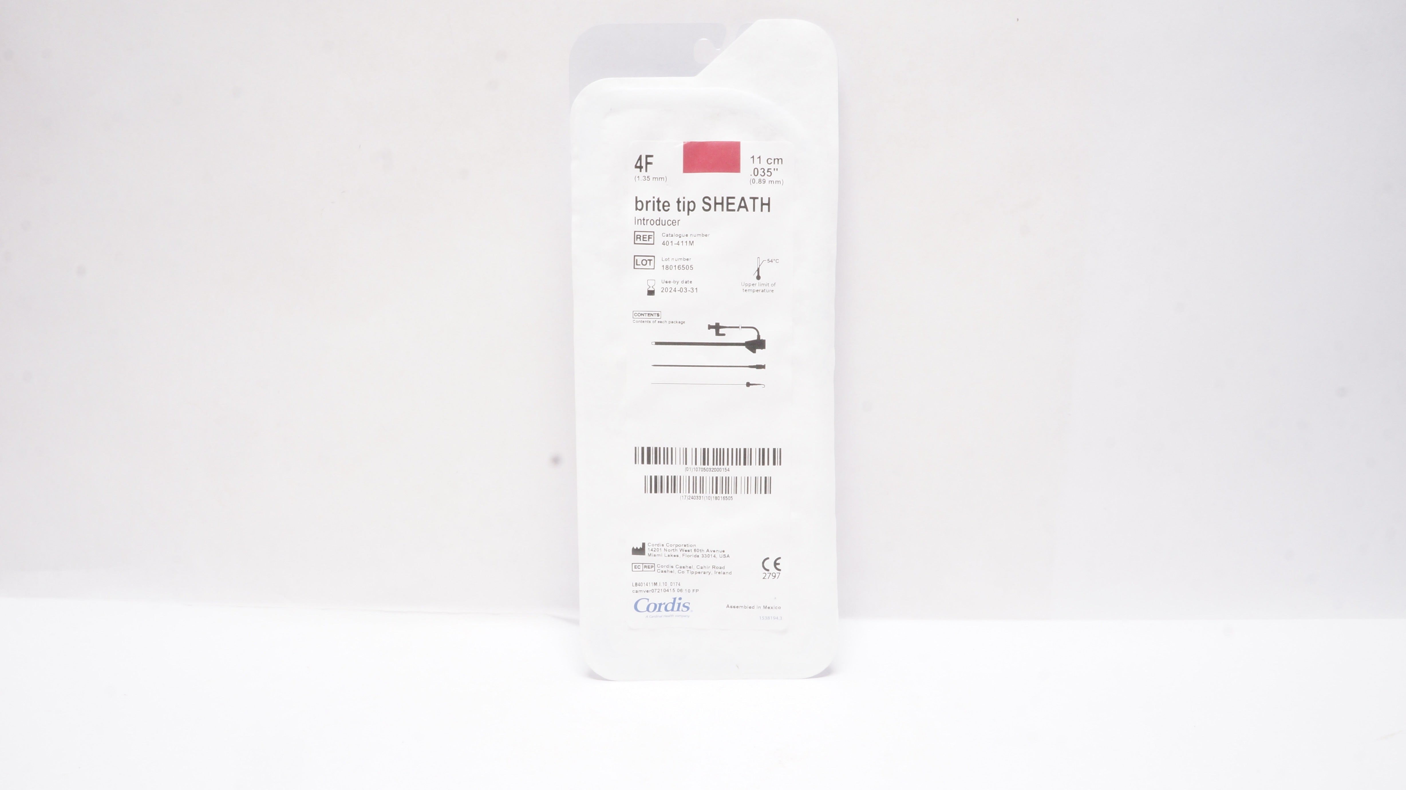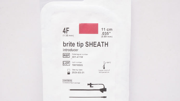 - Cordis 401-411M Brite Tip Sheath Introducer 4F x .035inch x 11cm
