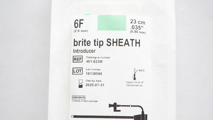 - Cordis 401-623M Brite Tip Sheath Introducer 6Fr x 0.035 inch x 23cm (x)