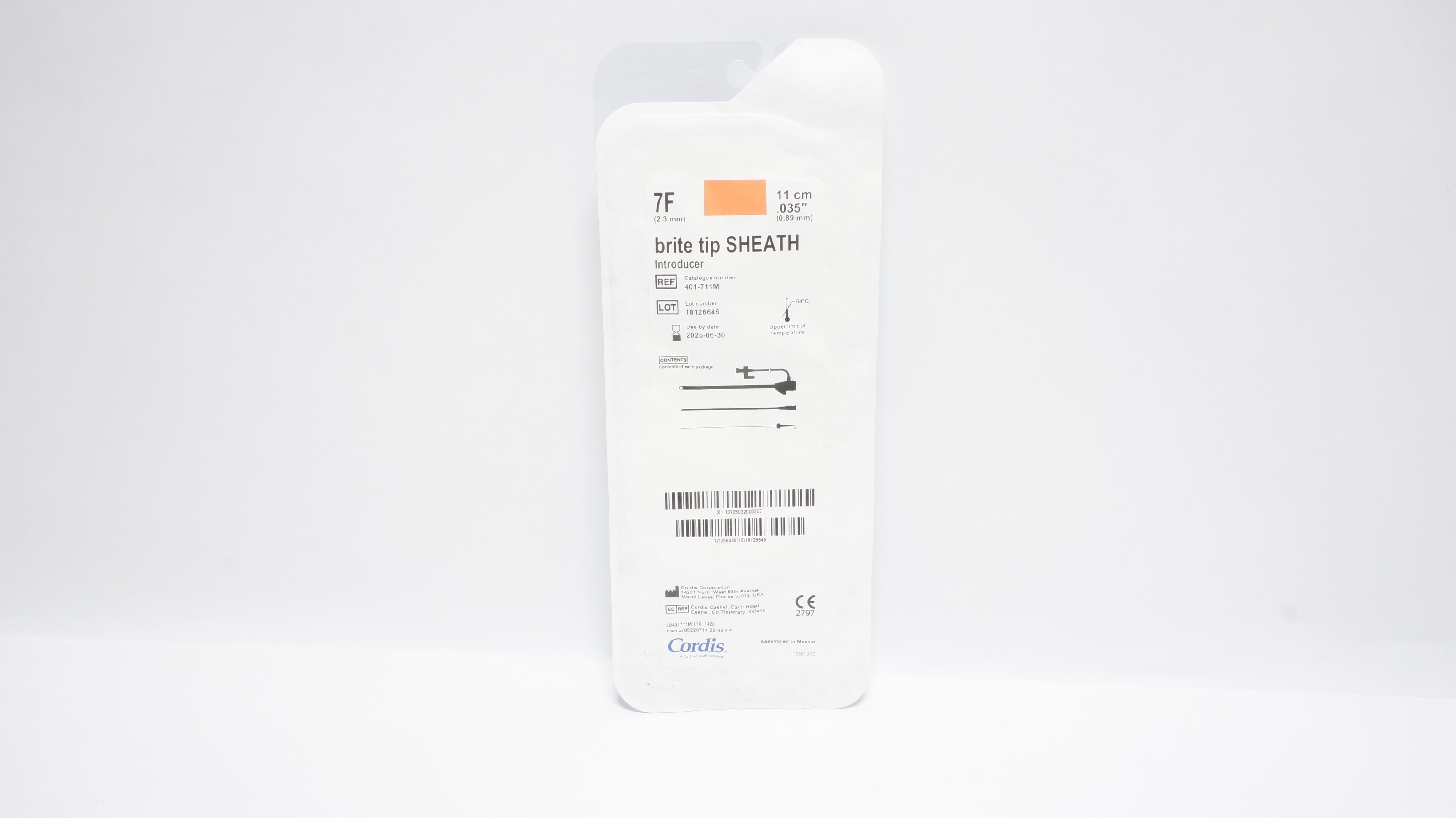 - Cordis 401-711M Brite Tip Sheath Introducer 7F x 11cm x .035inch (x)