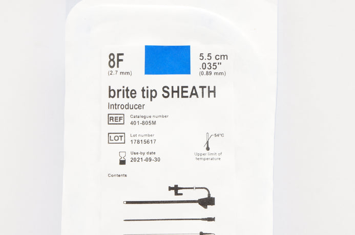 - Cordis 401-805M Brite tip SHEATH introducer 8F x 5.5 cm x .035inch (x)
