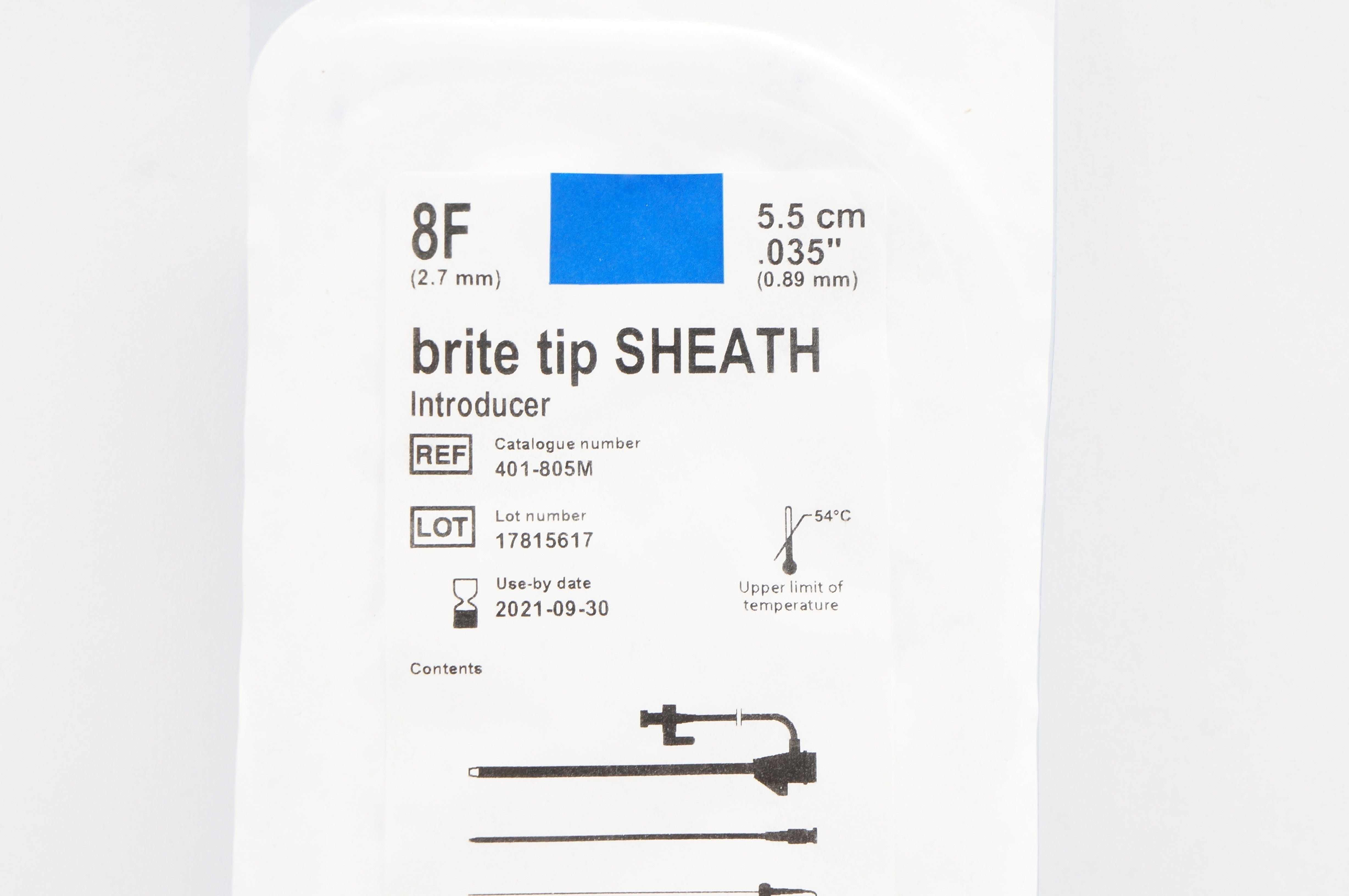 Cordis 401-805M Brite tip SHEATH introducer 8F x 5.5 cm x .035inch (x)