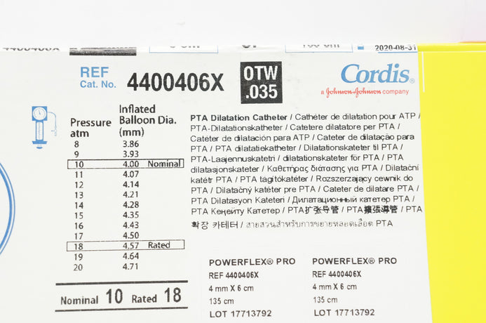 Cordis 4400406X Powerflex Pro PTA Dilatation Catheter 4mm x 6cm 5F
