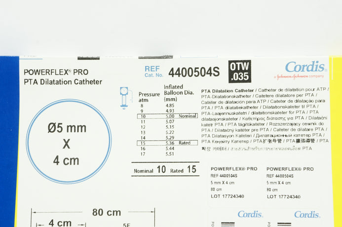 Cordis 4400504S Powerflex PRO PTA Dilatation Catheter Ø5mm x 4cm x 80cm