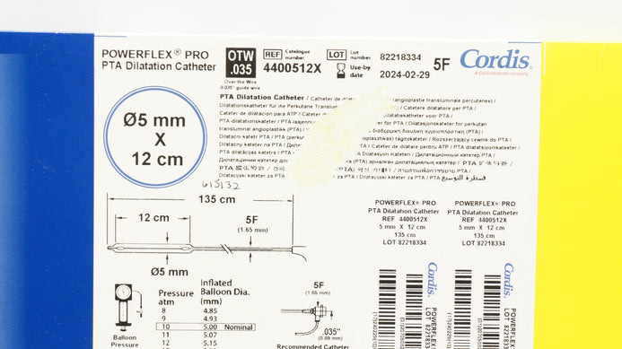 - Cordis 4400512X Powerflex Pro PTA Dilatation Cath. 5F 5mm x 12cm x 135cm (x)