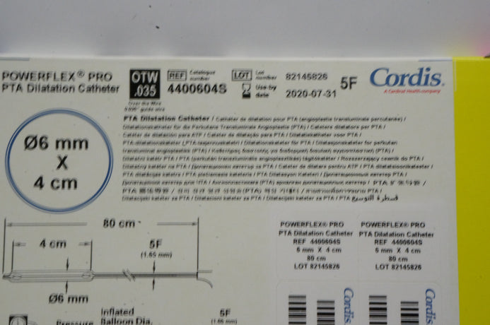 Cordis 4400604S PTA Dilatation Cath. 6mm x 4cm x 80cm, 5F (x)