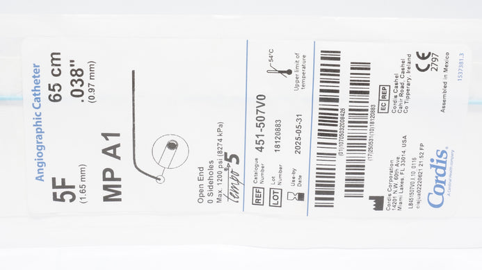 Cordis 451-507V0 Angiographic Cath. 5f x 65cm x 0.38In MP A1 Open End