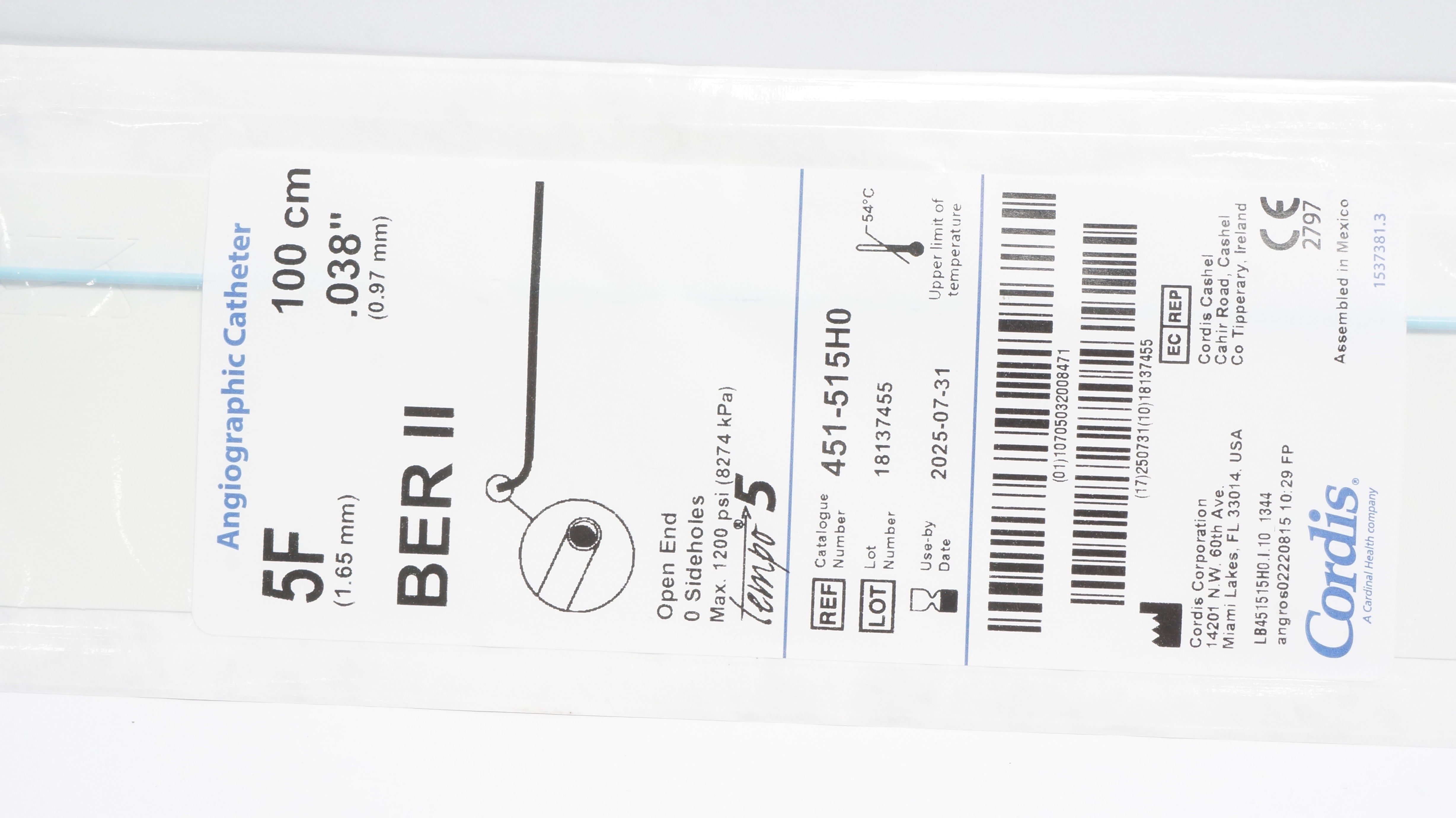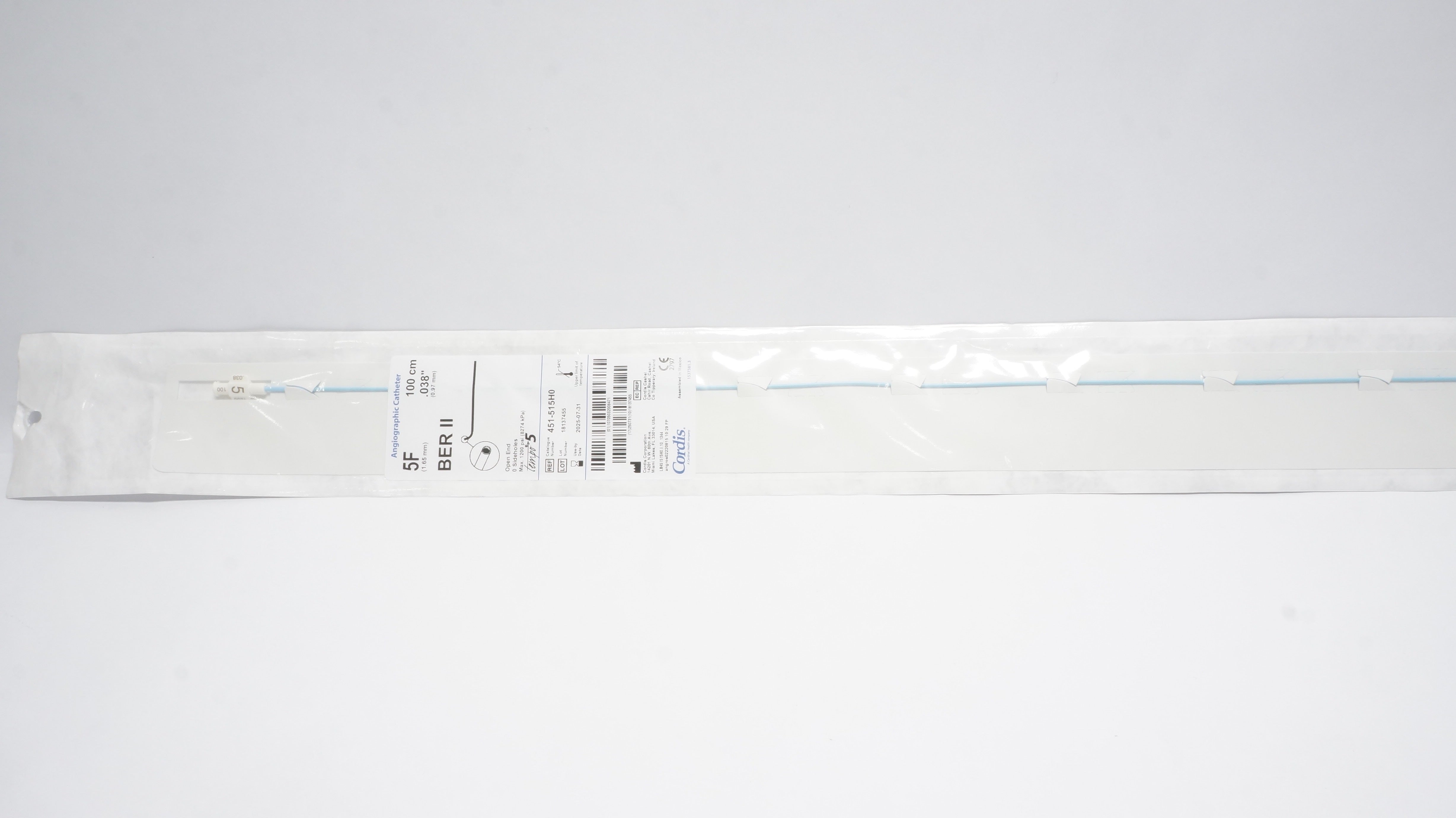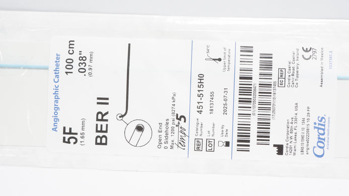 - Cordis 451-515H0 BER II Angiographic Cath. 5F x 100cm x .038inch (x)