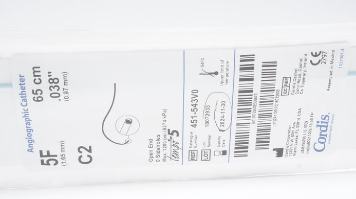 - Cordis 451-543V0 Angiographic Cath. 5F x 65cm .038In C2,Open end Max.1200psi (x)