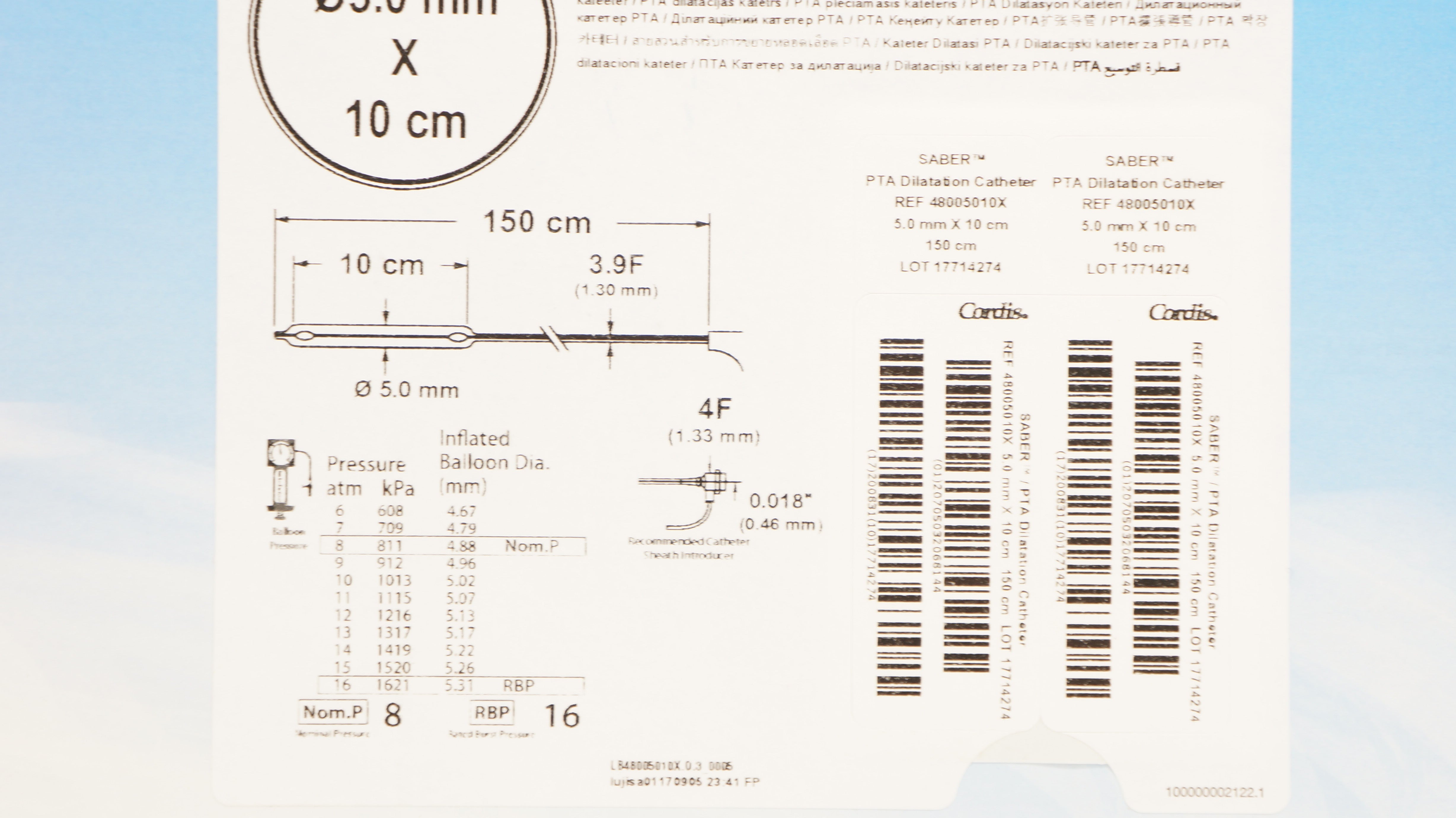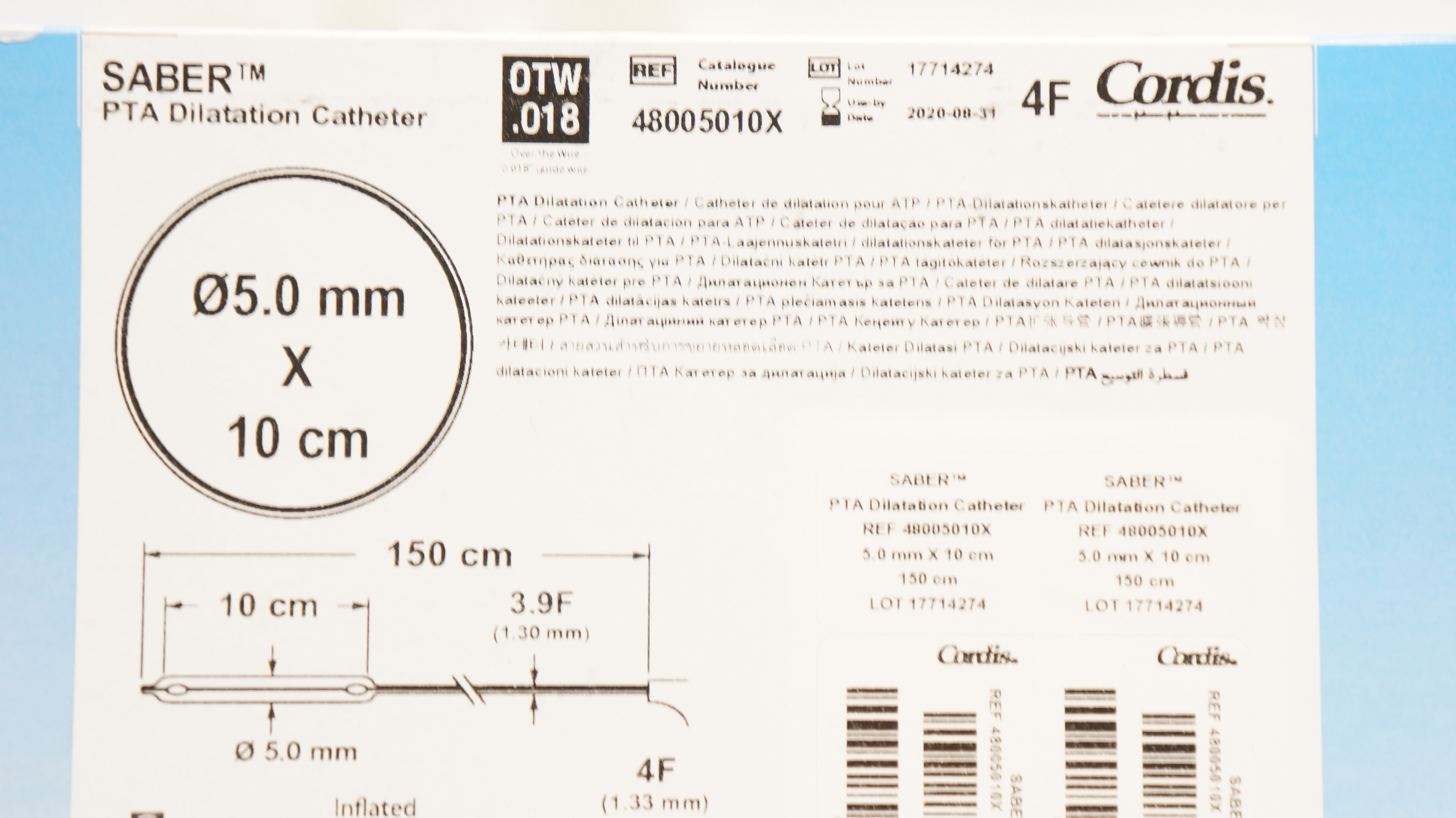 Cordis 48005010X Saber PTA Dilatation Catheter 4F 5.0mm x 10cm (x)