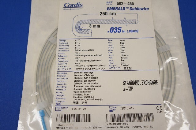 - Cordis 502-455 Emerald Guidewire Standard, Exchange J-Tip 260cm x 0.035