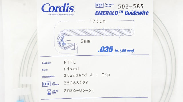 Cordis 502-585 Emerald Guidewires 175cm x 3mm x .035In