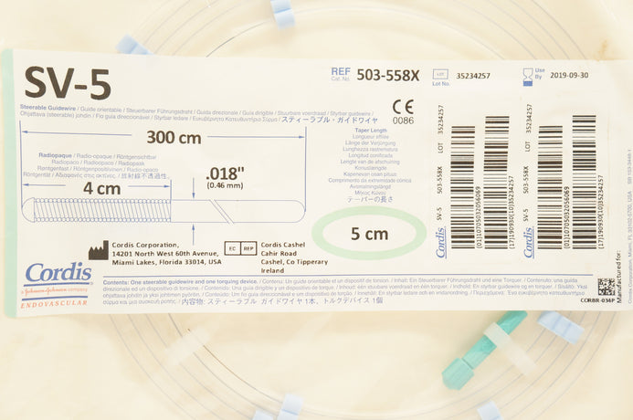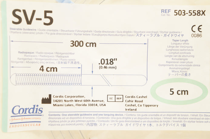 - Cordis 503-558X Steerable Guidewire & Torquing Device SV-5 5cm x .018 x 300cm(x)