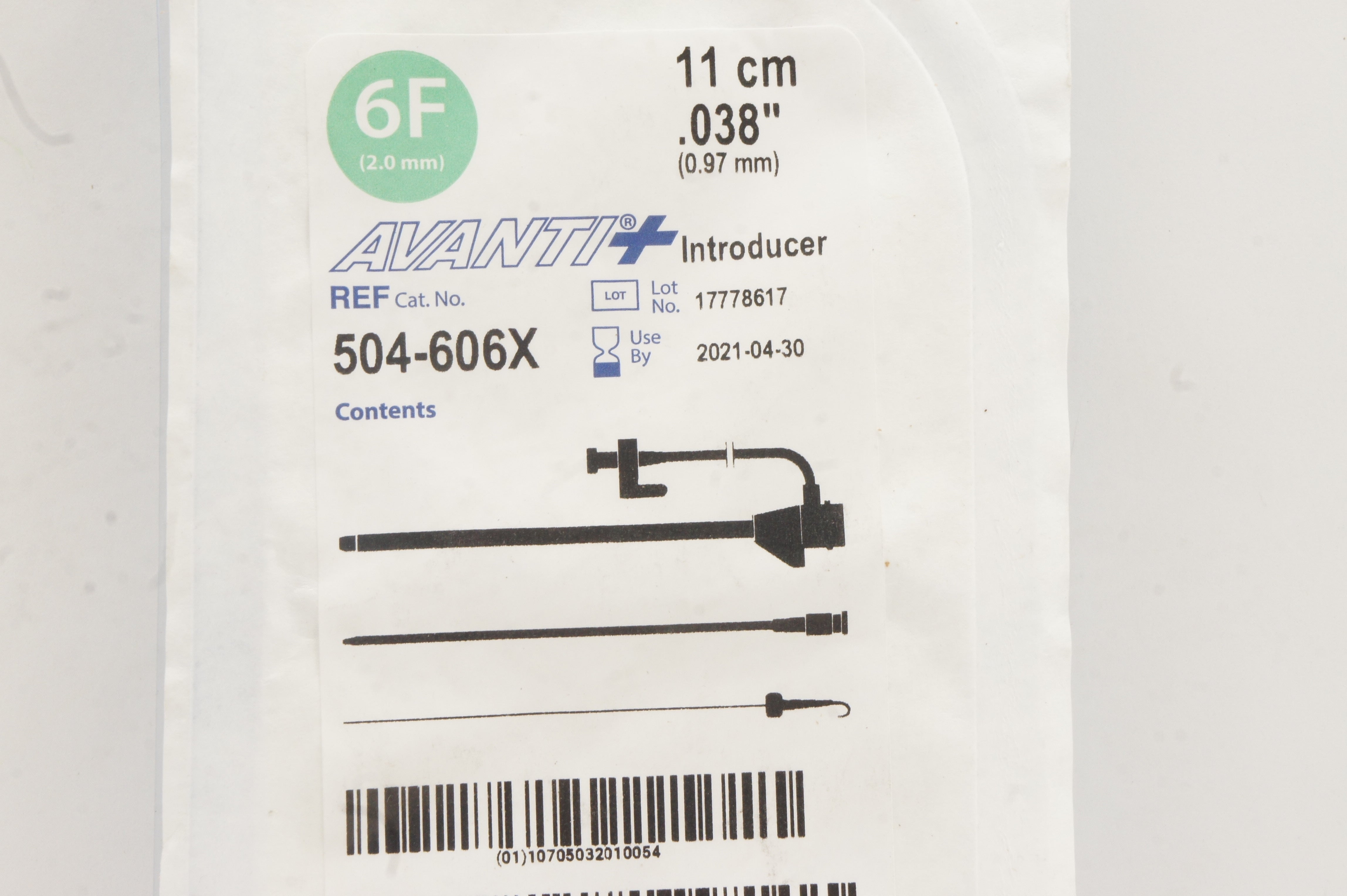 - Cordis 504-606X Avanti+ Introducer 6F x 11cm x .038 inch (x)