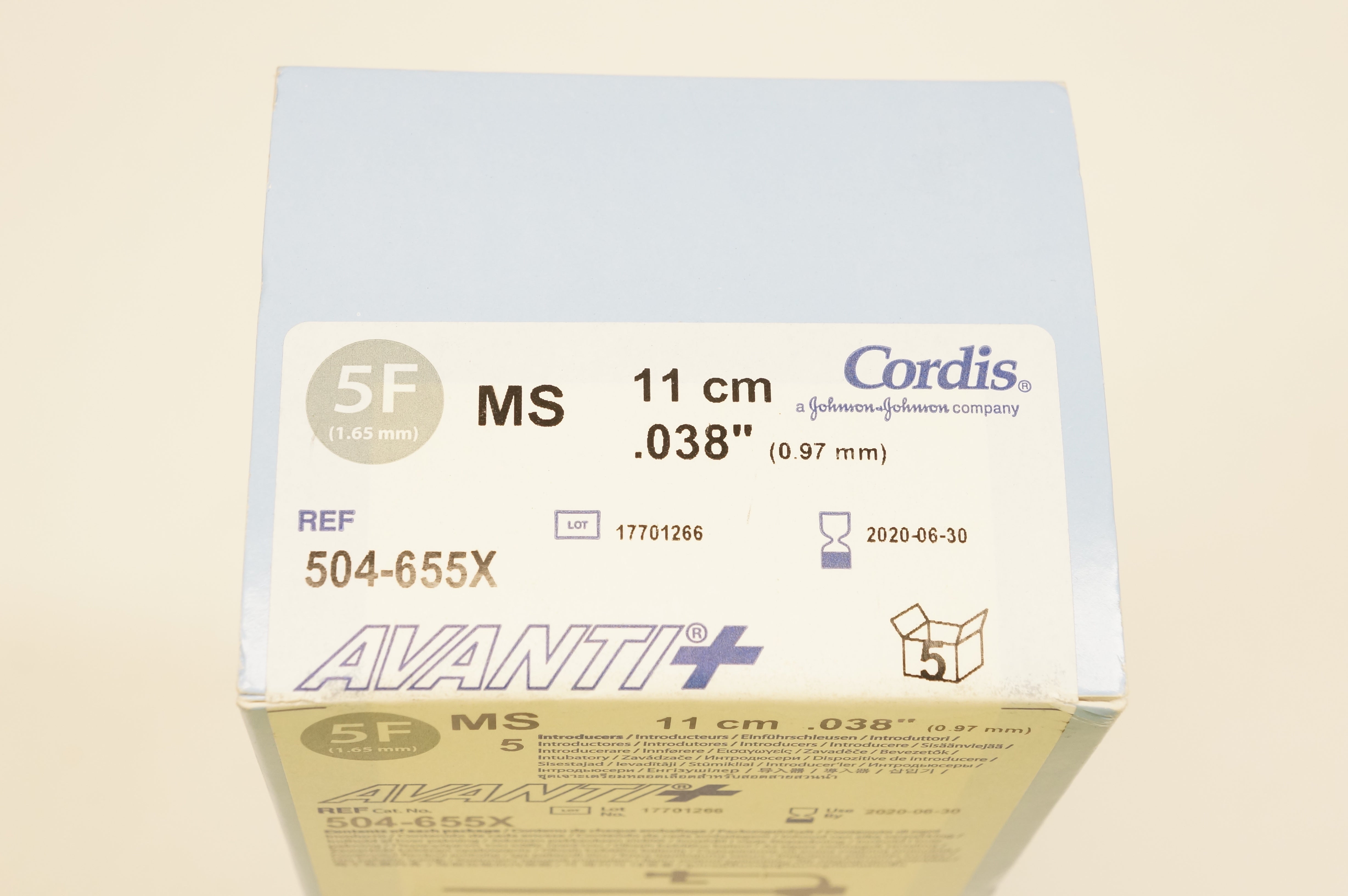 Cordis 504-655X AVANTI Plus Introducers, MF 5F