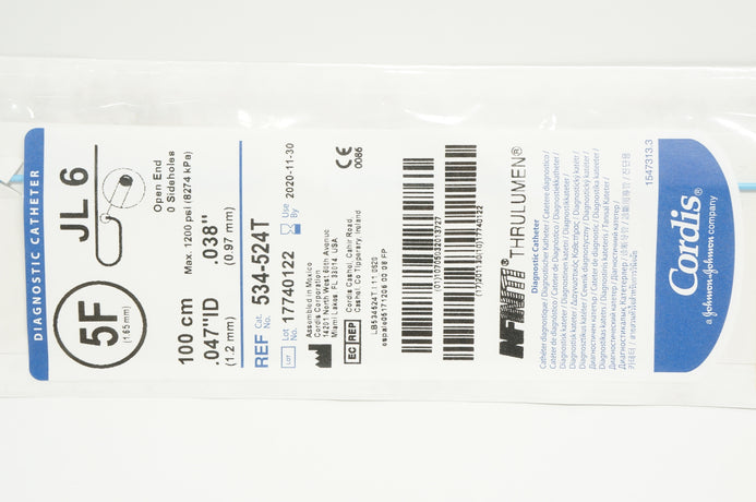 - Cordis 534-524T Diagnostic Cath. JL6 5F x .038inch x 100cm (x)
