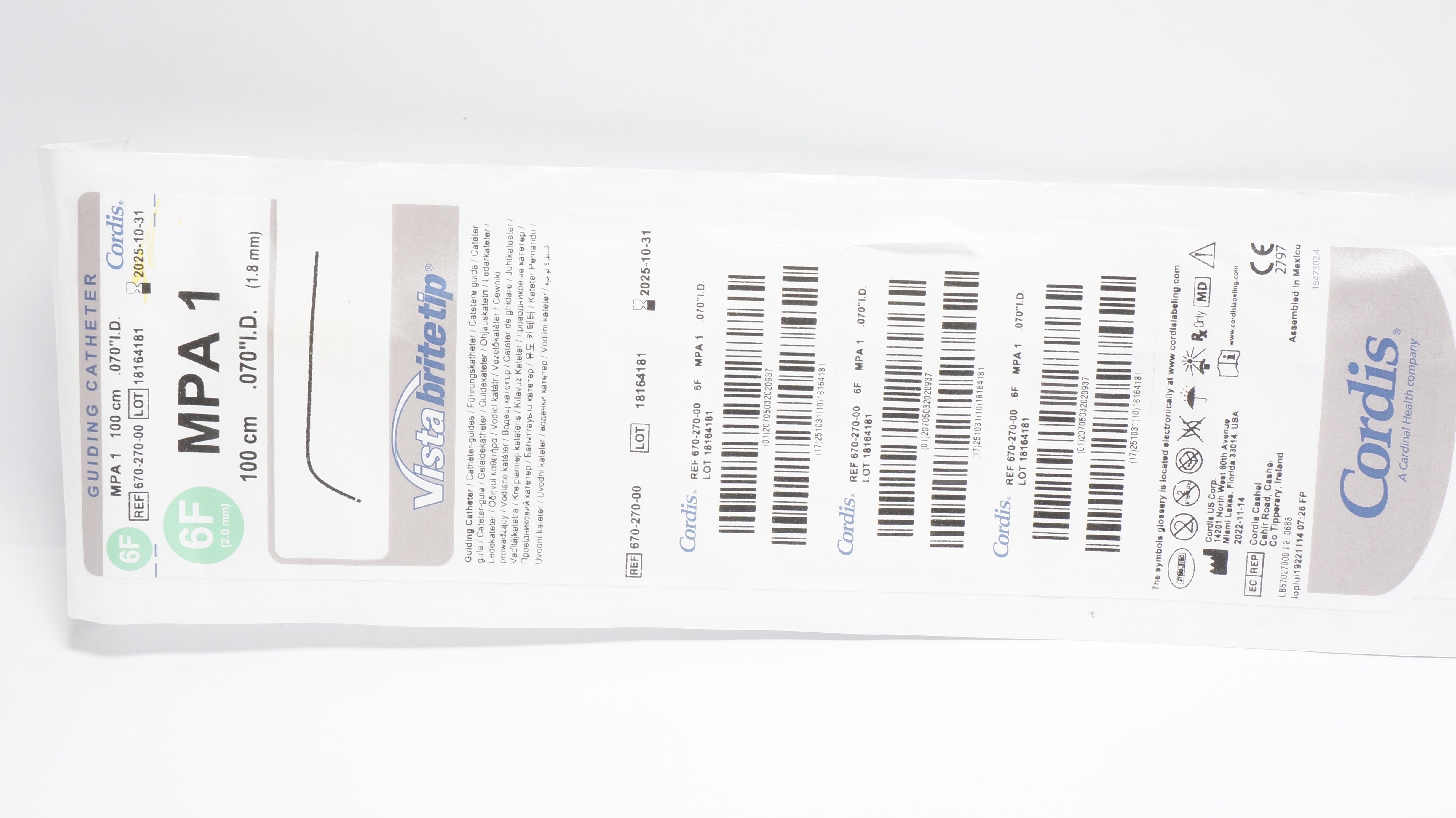 Cordis 670-270-00 Vistabritetip Guiding Cath. MPA 1 6F x 100cm x .070inch (x)