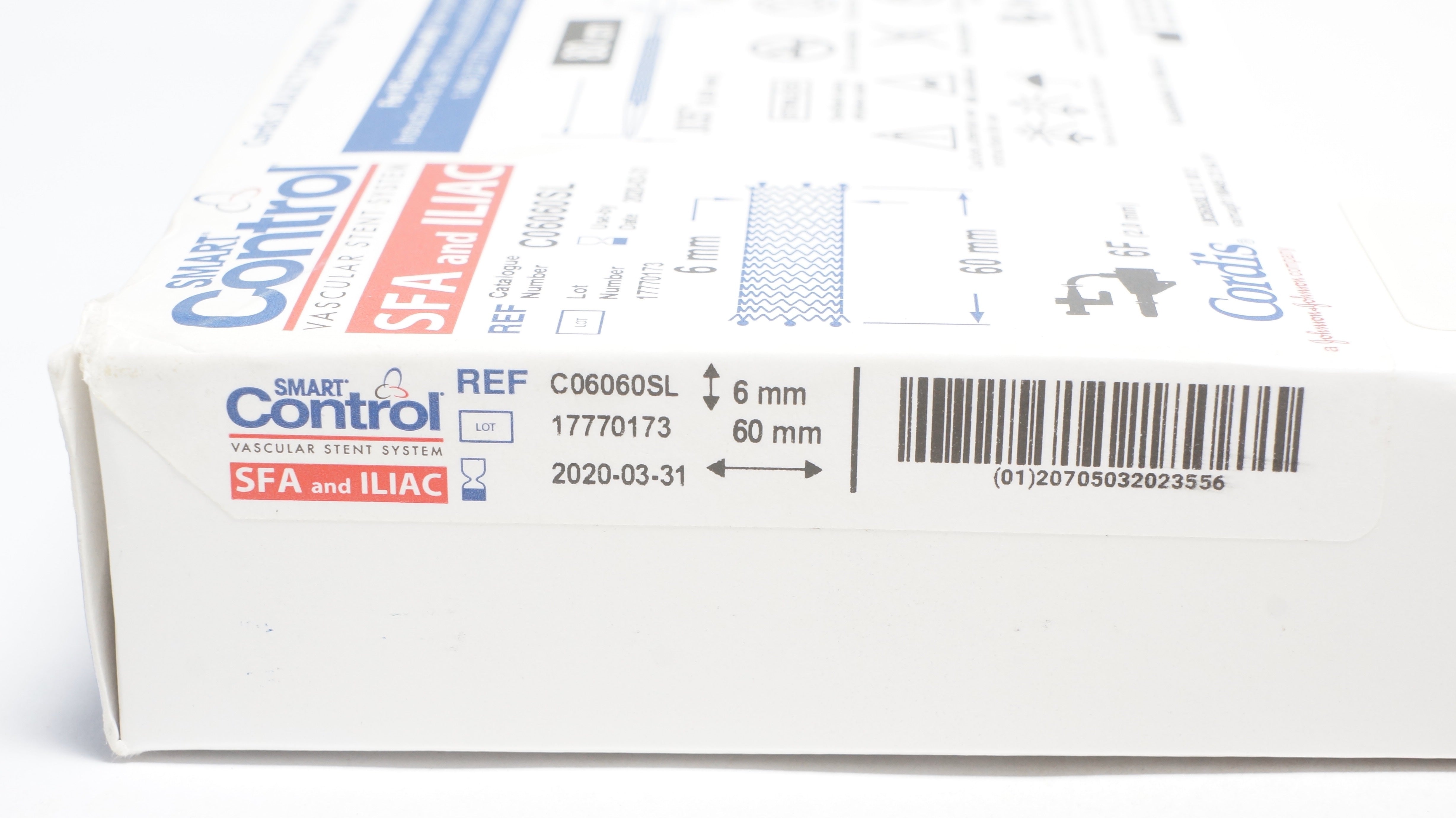 Cordis C06060SL S.M.A.R.T. Control Vascular Stent System 6mm x 60mm 6F, 80cm