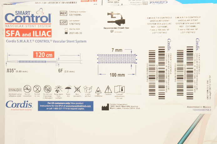 - Cordis C07100ML Smart Control SFA & ILIAC Vascular Stent System 6F x 120cm (x)