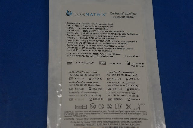 - CorMatrix CMCV-014-609 ECM for Vascular Repair 1cm x 10cm (x) ~ Pack of 5