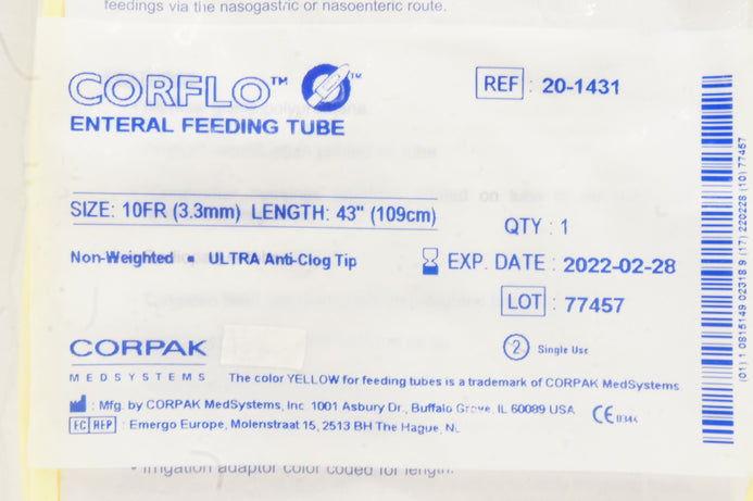 Corpak 20-1431 Corflo Enteral Feeding Tube 10Fr. x 43inch