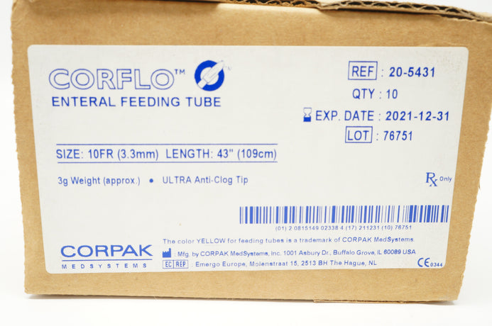 - Corpak 20-5431 Corflo Enteral Feeding Tube 10 Fr x 43 inch - Box of 10