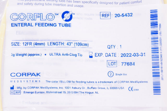- Corpak 20-5432 Corflo Enteral Feeding Tube 12 Fr x 43 inch