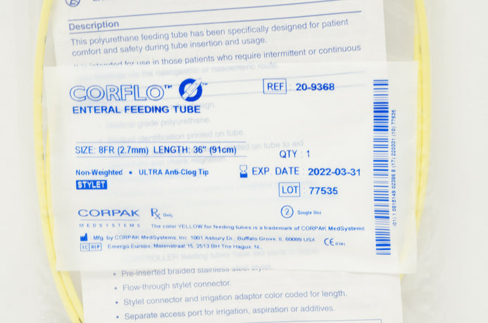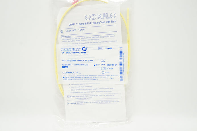 - Corpak 20-9368 Corflo Enteral NG/NI Feeding Tube with Stylet 8Fr x 36inch