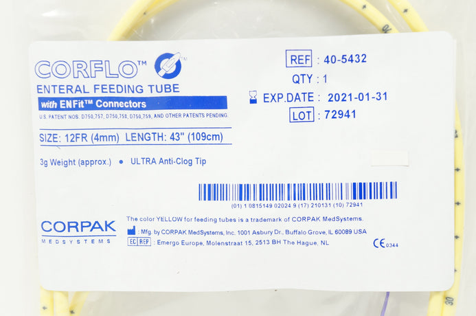 Corpak 40-5432 Corflo Ultra Enteral Feeding Tube 12Fr x 43 inch