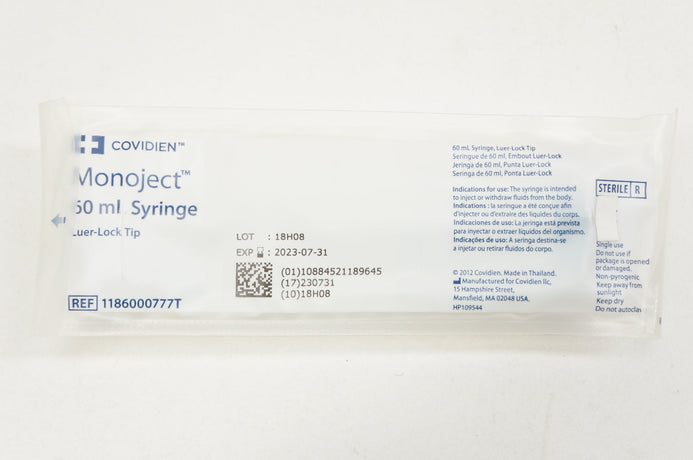 Covidien 1186000777T Monoject Syringe Luer Lock Top 60mL