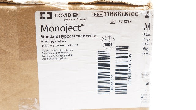 - Covidien 1188818100 Monoject Standard Hypodermic Needle 18G x 1In - Case of 1000