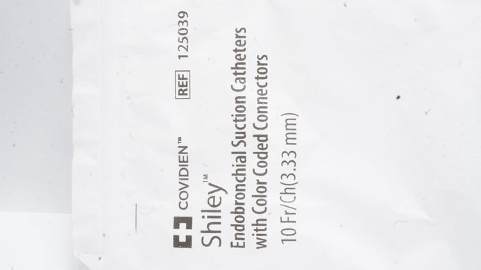 Covidien 125039 Shiley Endobronchial Suction Caths. w/Coded Connectors 10Fr/Ch