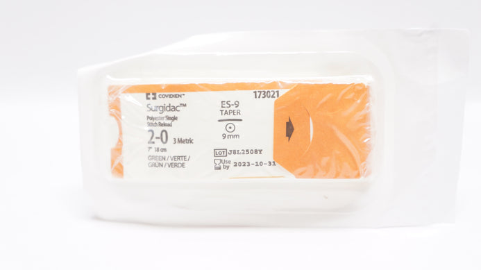 - Covidien 173021 2-0 Surgidac ES-9 Taper 9mm Polyester Single Stitch Reload 7in(x)