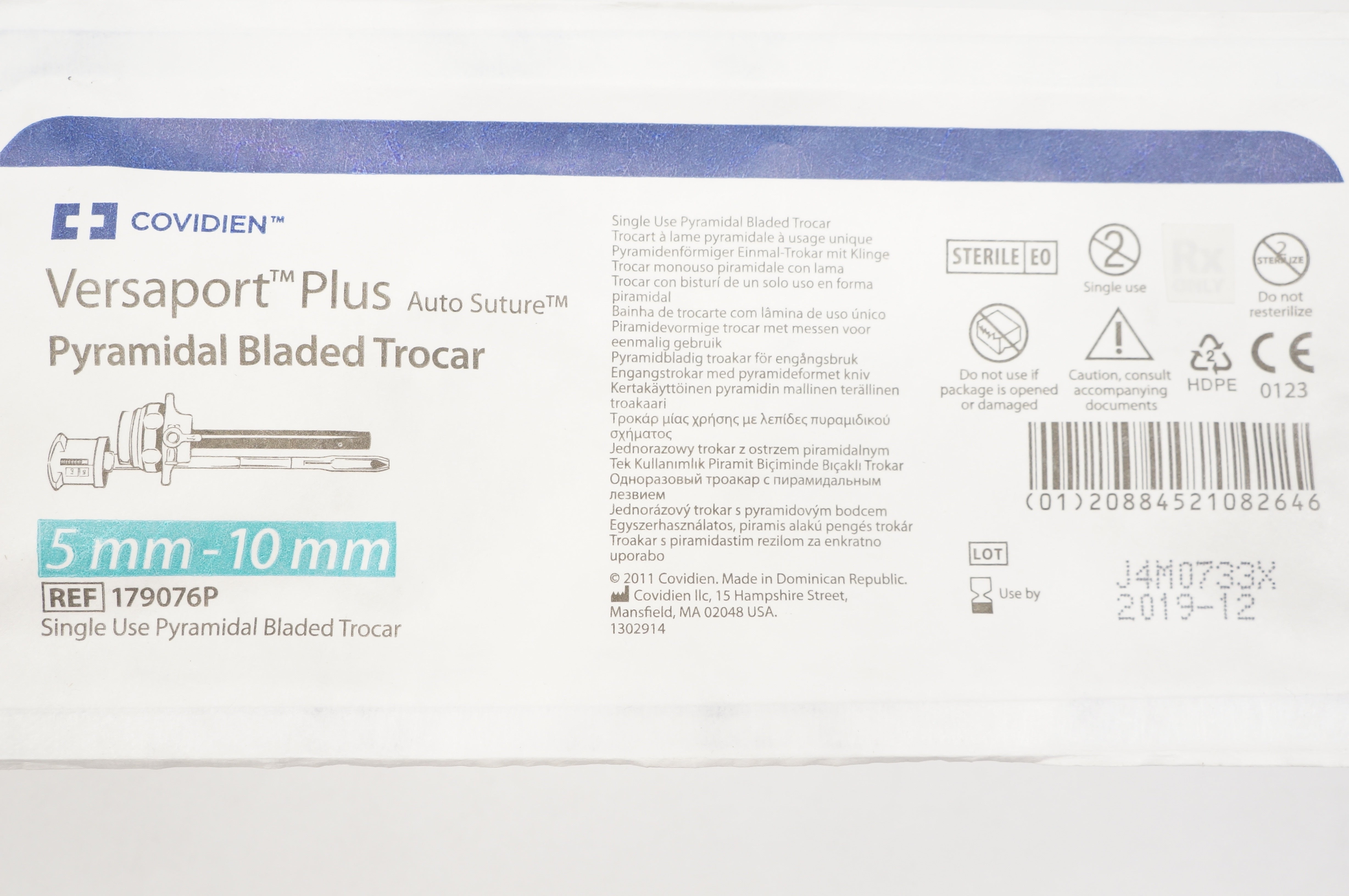 Covidien 179076P Versaport Plus Pyramidal Bladed Trocar 5mm-10mm
