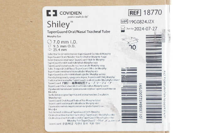 Covidien 18770 Shiley TaperGuard Oral/Nasal Tracheal Tube 7.0mm 9.5mm - Case of 100