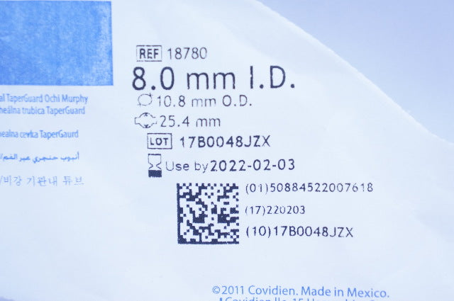 Covidien 18780 Mallinckrodt Taperguard Oral/Nasal Tracheal Tube 8 x 10.8 x 25.4mm