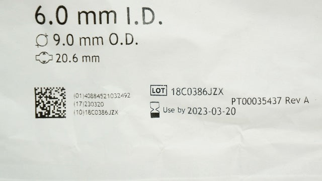 Covidien 18860 Shiley TaperGuard Evac Oral Tracheal Tube 6.0ID x 9.0 OD x 20.6mm