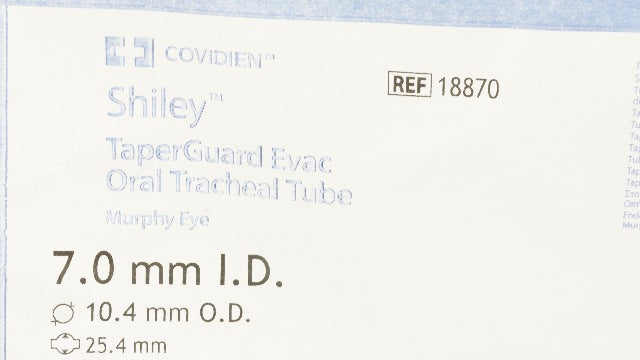 - Covidien 18870 Shiley TaperGuard Evac Oral Tracheal Tube 7.0ID x 10.4OD x 25.4mm