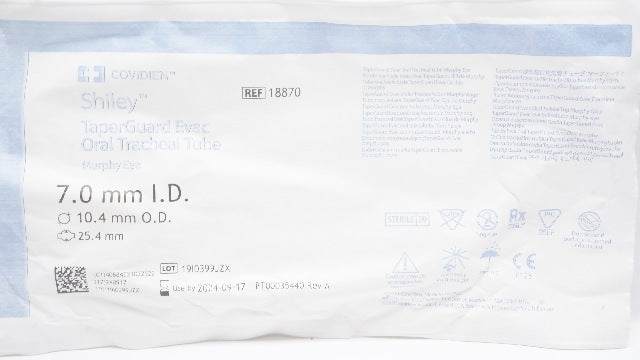 - Covidien 18870 Shiley TaperGuard Oral Tracheal Tube 7.0ID x 10.4OD x 25.4mm (x)