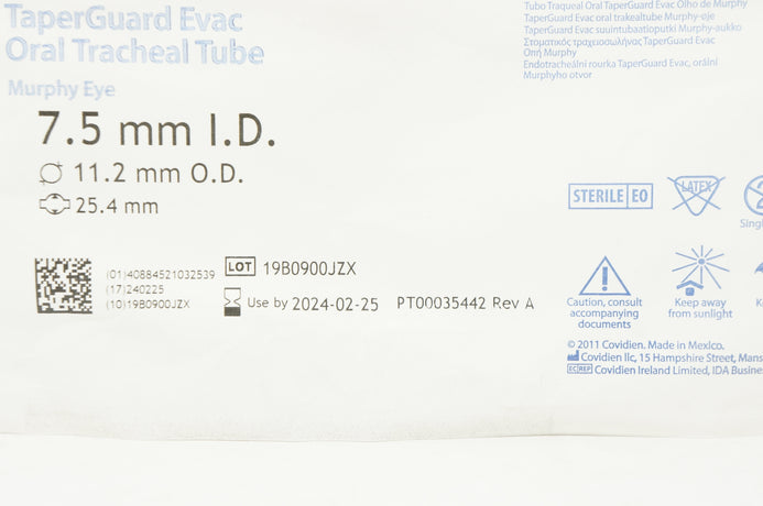 Covidien 18875 Shiley TaperGuard Evac Oral Tracheal Tube 7.5IDx11.2ODx 25.4mm(x)