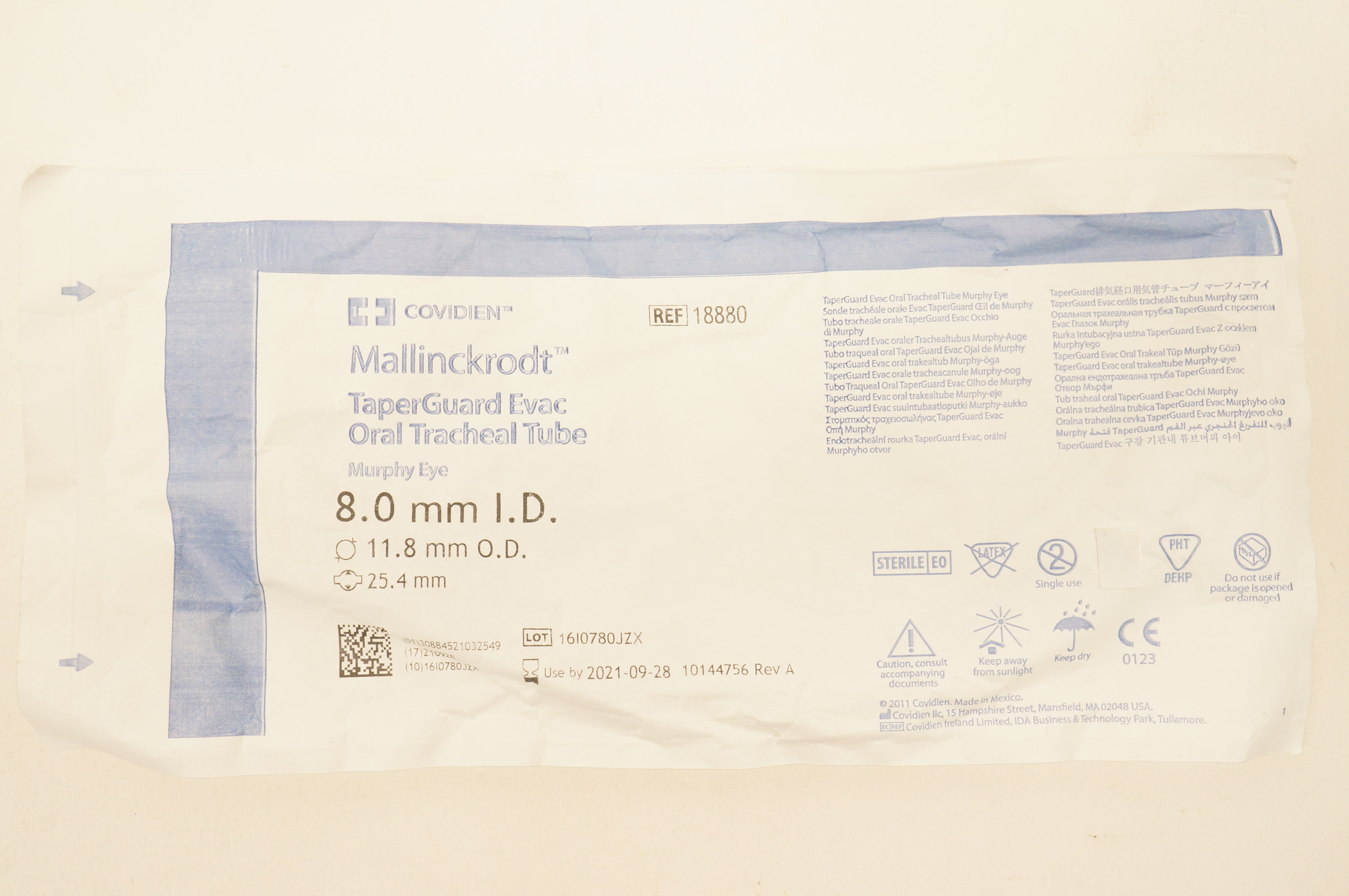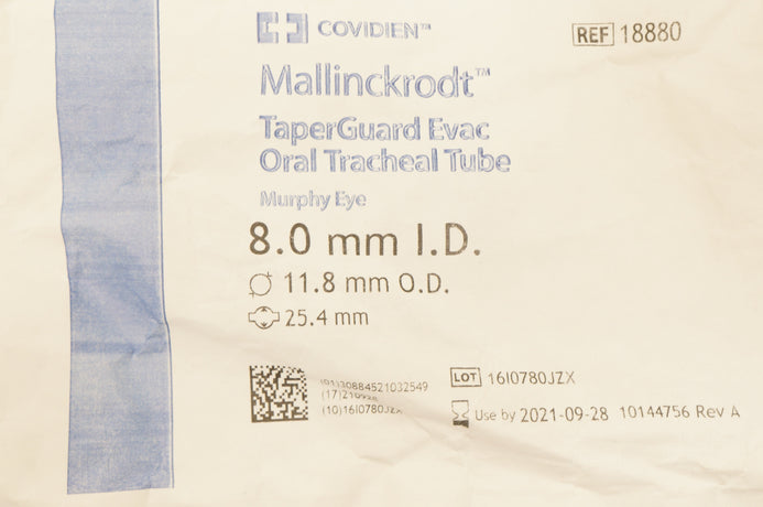 Covidien 18880 Mallinckrodt TaperGuard Evac Oral Tracheal Tube 8.0mm ID x 11.8mm OD x 25.4mm