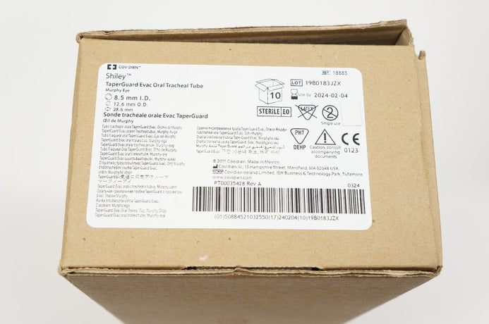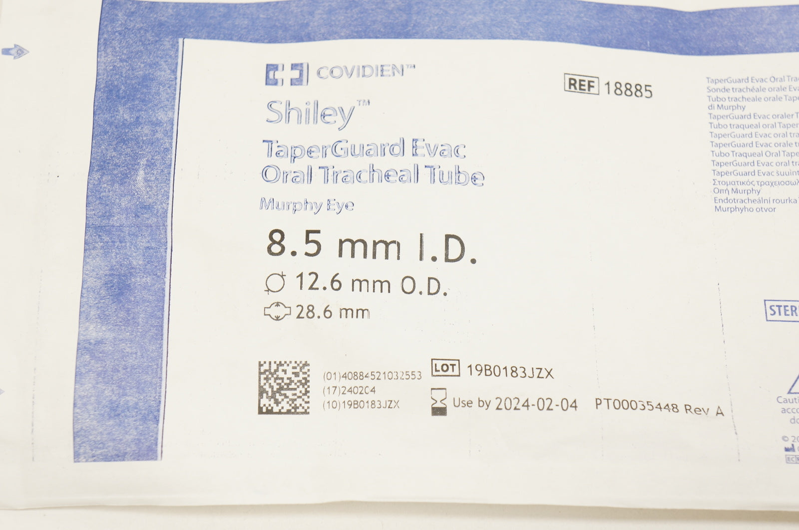 - Covidien 18885 Shiley TaperGuard Evac Oral 8.5mm ID - Box of 10 ~ 2024-02